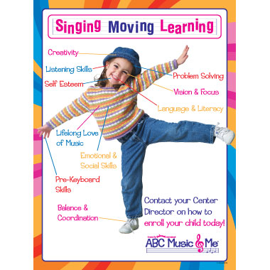 ABC Music & Me, an award-winning enrichment program for 2 to 6 year olds, was designed for early childhood learning centers, but can also be taught in a Kindermusik classroom. ABC Music & Me is a research-based language and early literacy program built around music. ABC Music & Me helps develop pre-literacy and language skills through a child’s most-loved rituals: music and storytime.